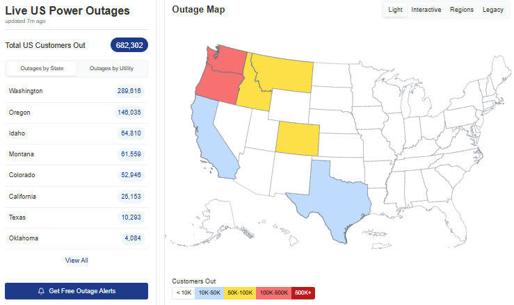 Winds have gusted to over 100 mph in spots, and per the website PowerOutage.us nearly 700K customers are without power across the West, including more than 400K in Washington and Oregon.