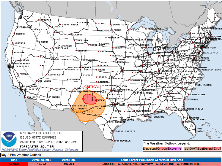 Additional fire danger issues are anticipated on Saturday across parts of New Mexico and Texas. This entire region has been rather dry of late and with warm and dry weather anticipated for the foreseeable future, additional days with fire danger will likely be seen.