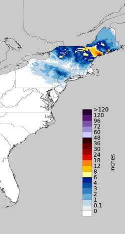 The Northeast continues to be the lone holdout on this warmer weather, and wintry precipitation impacted the region in the last 24 hours, particularly north and northwest of the major metro areas. A trough of low pressure focused heavy snow in parts of Maine, with more than a foot in areas northeast of Portland.