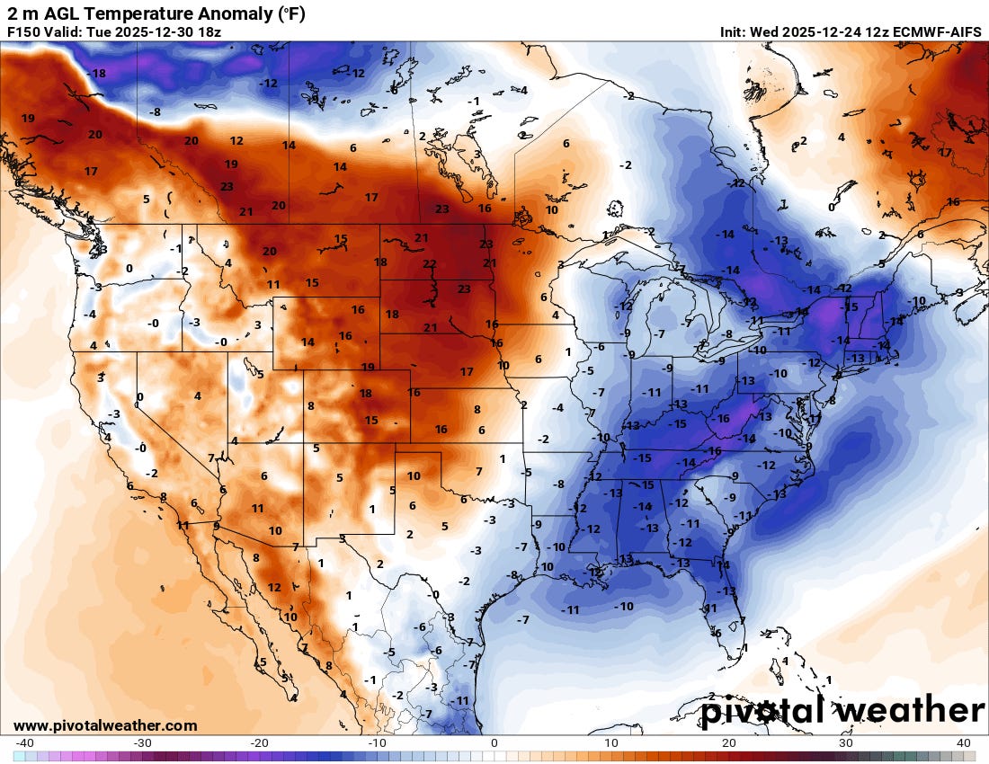 Happy Christmas Eve! Our focus today continues to be on the high impact weather in California and adjoining areas, and the unseasonable warmth dominating much of the rest of the nation.
