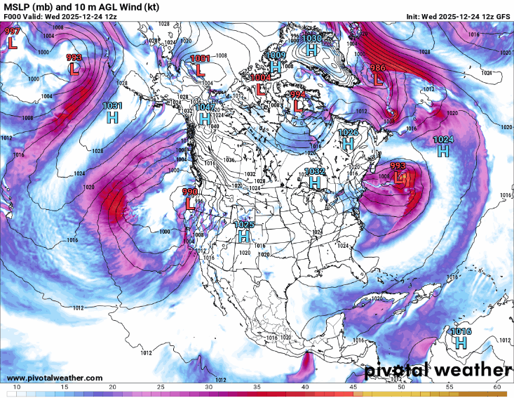 A break in the heaviest rainfall across southern California is expected later this evening, and attention will turn to the next low pressure system forecast to impact the West Coast later tonight and into Christmas morning. The models have been struggling with the forecast for this low as well, but the overall trend (most recent GFS model shown for illustrative purposes) has been for an intensifying low to slowly meander off the northern California and Oregon coast before beginning to weaken later on Christmas.