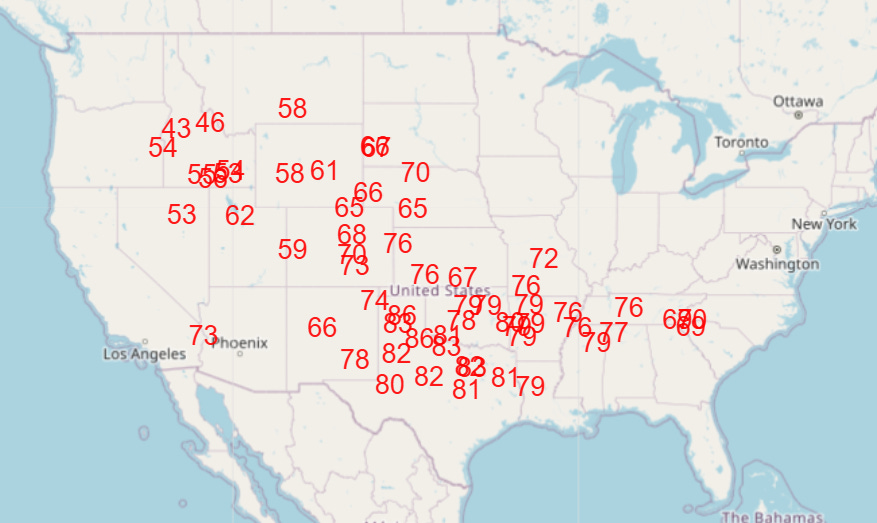 While somewhat cooler air will start to spread into the western United States, record warmth will continue across much of the central and southeastern United States through the weekend (NWS forecast record high temperature maps above for today, Friday, and Saturday).