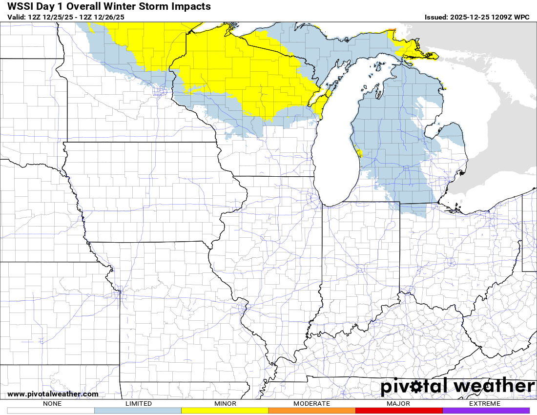 Much of the rest of the country experienced record warmth on Christmas Eve, with record high temperatures from coast to coast as shown in the map from coolwx.com above. Amazingly for late December, several monthly records were set again (the magenta dots above). Sites setting new monthly records included Amarillo (84F), Joplin MO (77F) and North Platte NE (78F). Phoenix set an all-time December record warm minimum temperature with a low of 63F.