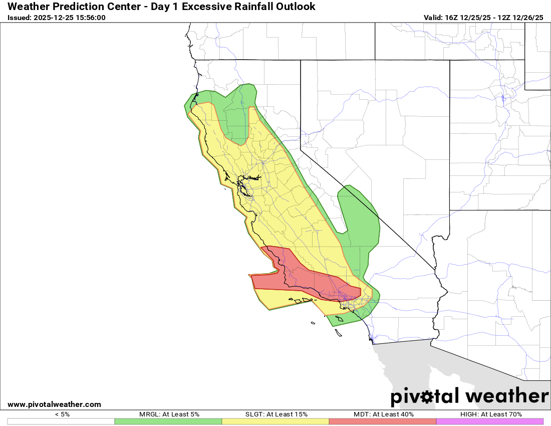 While rainfall will not be as heavy as yesterday, rivers are high and ground conditions are very wet from the earlier rainfall. Heavy rainfall from showers and thunderstorms moving across the state will runoff quickly and potentially cause additional flash flooding or exacerbate ongoing flooding. The greatest risk of flash flooding will continue to be across the higher elevations of southern California that saw the heaviest rainfall yesterday.