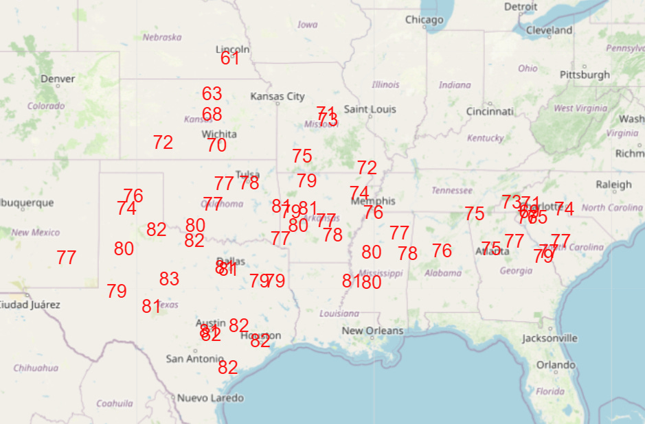 While somewhat cooler air will start to spread into the western United States, record warmth will continue across much of the central and southeastern United States through the weekend (NWS forecast record high temperature maps above for today, Friday, and Saturday).