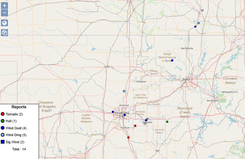Images of rather significant damage to homes and buildings from the tornado near Purcell, OK have been posted by local media. Needless to say, severe weather in Oklahoma in January is rather unusual, although as recently as 2023 a severe weather episode brought a record 5 tornadoes to the state on January 2nd.