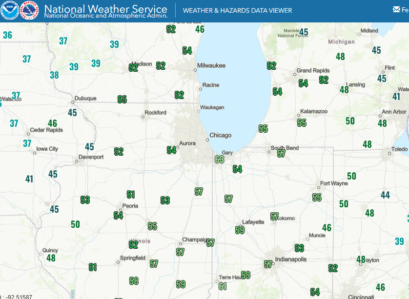 The temperatures being so warm overnight is a combination of the warmth but also the unusual levels of moisture, as seen in the condensation that forced the NBA postponement. Dewpoint values at midnight CT (above) were incredibly high for early January, in the 50s and even lower 60s in spots across this region as southerly winds ahead of an intensifying system moving northeast through the Great Lakes region pulled Gulf moisture north.