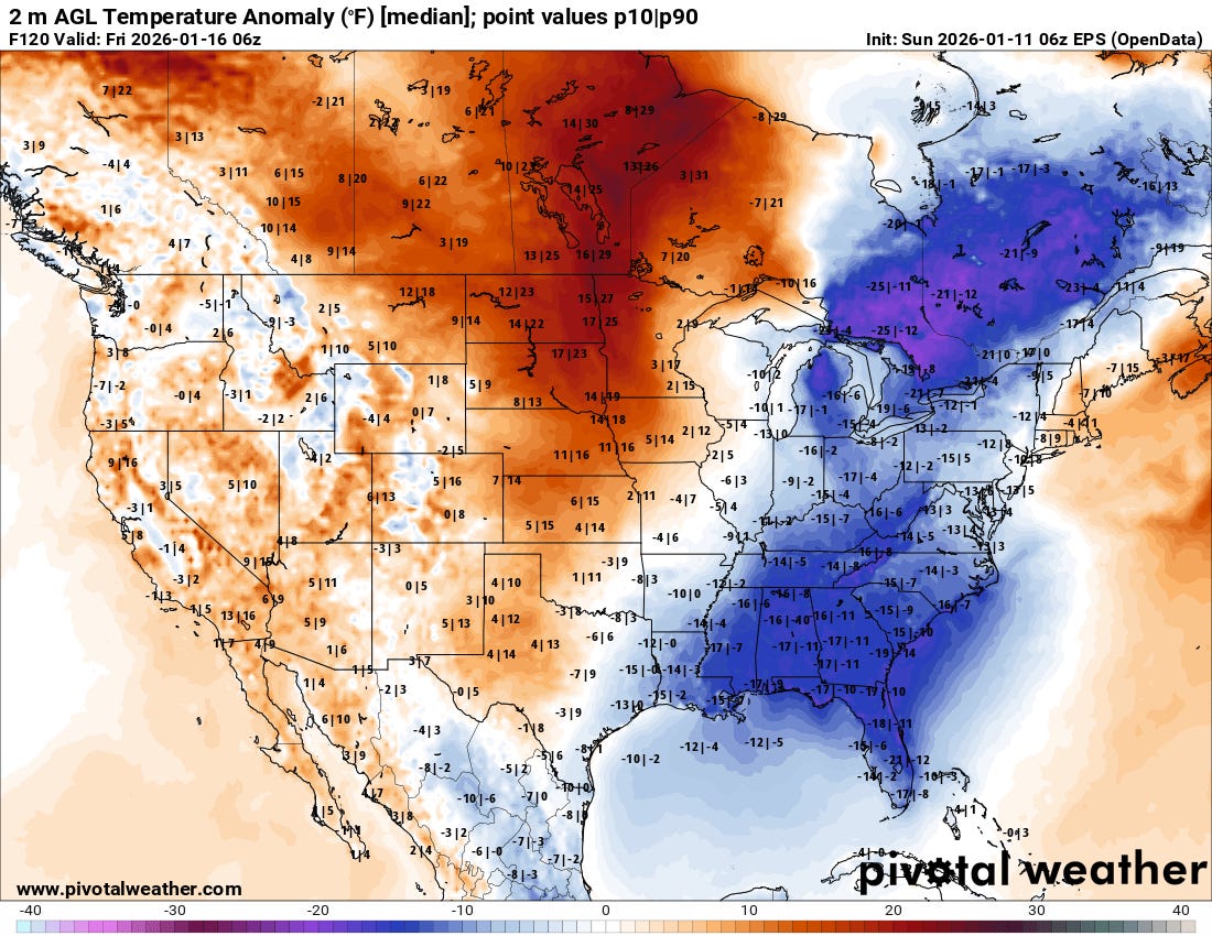 Alaska and Northwest Canada have also been seeing much below normal temperatures this winter along with above normal (and in some cases record) snowfall in many locations. My colleague Rick Thoman has an excellent summary of December 2025 weather in the Arctic on his Substack (graphic above from his article), as well as a great writeup of the extreme snowfall that southeast Alaska saw at the end of December.