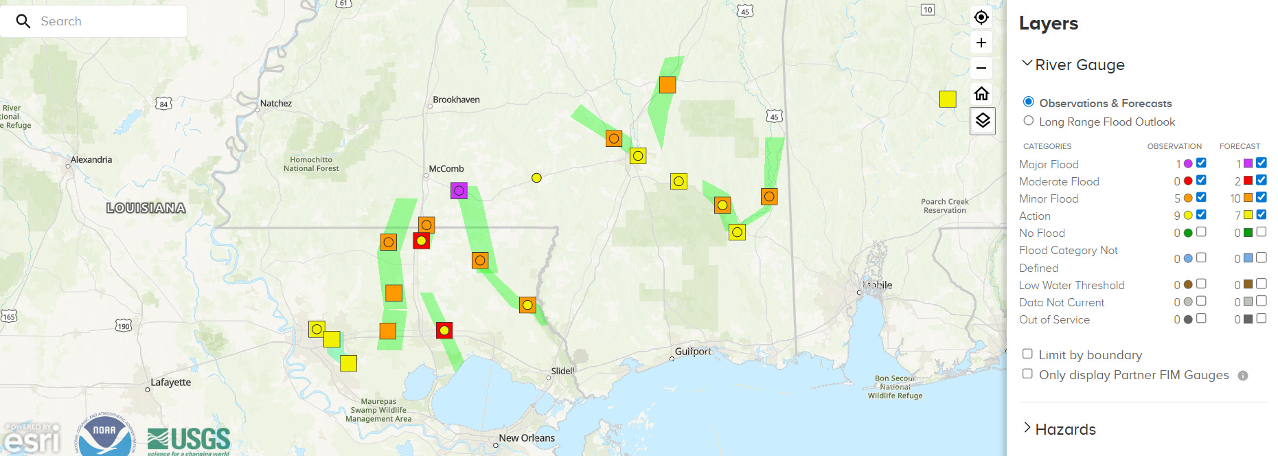 Starting off this morning with a quick addendum to yesterday’s post about the very heavy rainfall in parts of southern Mississippi and eastern Louisiana. While as expected the river flooding did not end up being a huge impact in spite of the rather widespread 5-10” of rain across the region due to the prolonged dry weather leading into the event, the Tangipahoa River is now forecast to go into moderate flood and the Bogue Chitto River has reached major flood stage at Tylertown, MS. Given the dry weather and low river levels going into this rainfall event, this is quite impressive and further emphasizes the magnitude of this rainfall event.