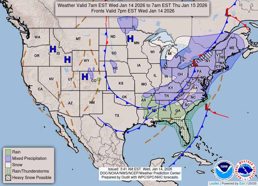 While this morning’s US global model did trend toward a more significant winter storm over the Southeast and Mid-Atlantic associated with the next surge of cold air this weekend, none of the other operational models currently show any such system, and as of now the more likely scenario continues to be that the bulk of any significant accumulating snow will remain in the lee of the Great Lakes and higher interior elevations of the Northeast and Appalachians. However, some lighter snow could occur over parts of the South and Mid-Atlantic at some point during this period of colder air over the next week or so.