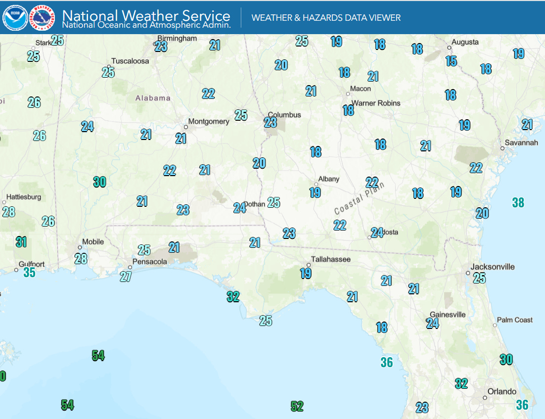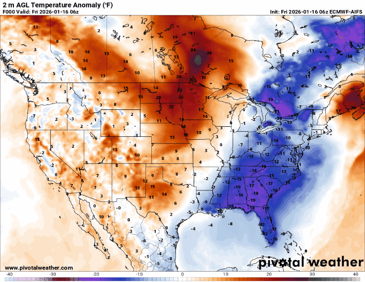 It is a cold morning across the East this Friday, with the greatest departure from normal over the Southeast as this first shot of polar air bottoms out into Florida. At least a few record low temperatures were set this morning, including 21F at Jacksonville and 33F at Melbourne.