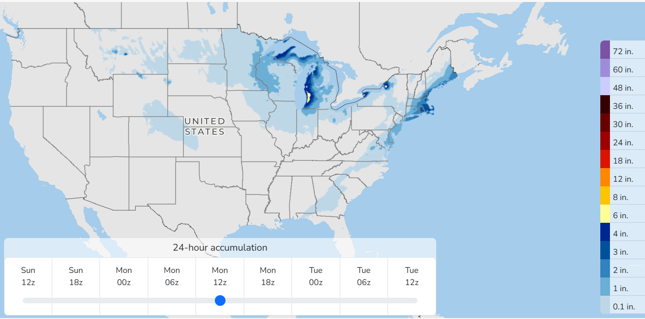 Some mixed wintry precipitation is expected along the East Coast, with moderate snowfall accumulations anticipated in parts of the interior Northeast and to the lee of Lakes Superior and Michigan.