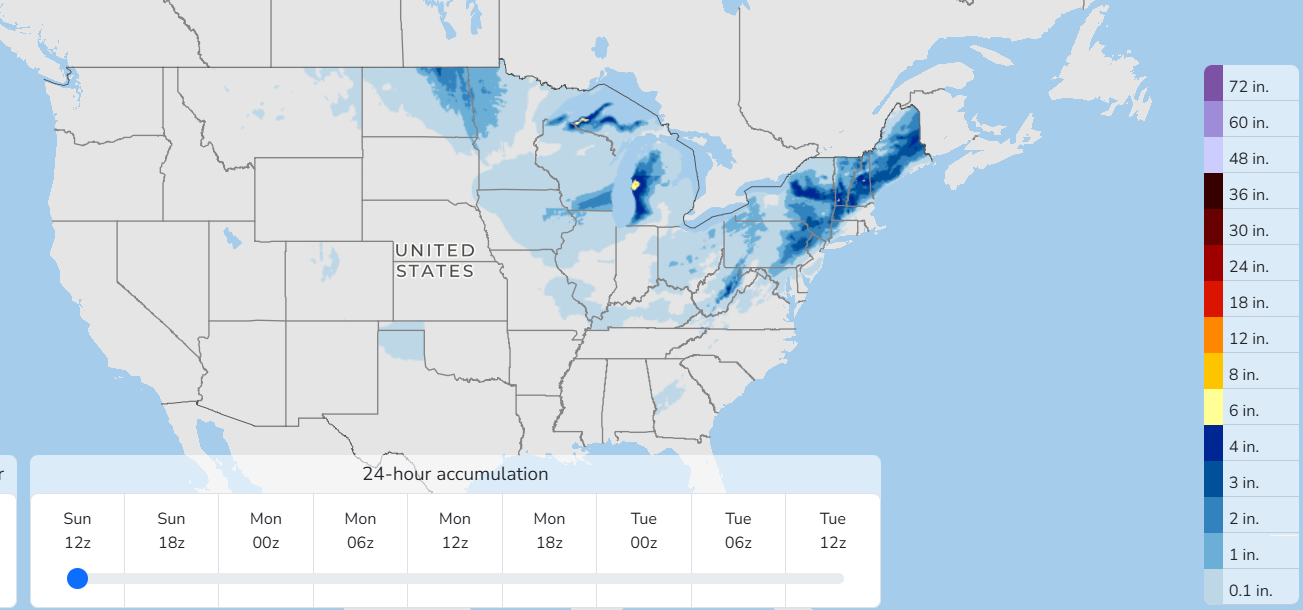 Some mixed wintry precipitation is expected along the East Coast, with moderate snowfall accumulations anticipated in parts of the interior Northeast and to the lee of Lakes Superior and Michigan.