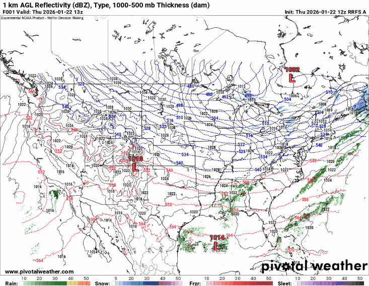 The above animation is the forecast of radar depiction of precipitation from this morning’s Rapid Refresh Forecast System (RRFS) for the next 84 hours (through Sunday evening). I am not showing this with the idea of it being a perfectly accurate forecast, but rather to give you an idea of the overall timing of precipitation that can be expected over the next few days. Wintry precipitation should expand in coverage and intensity across the Southern Plains Friday and gradually expand east through the weekend, with most of the impacts in the Mid-Atlantic and Northeast coming Sunday into Monday. Multiple waves of moderate to heavy precipitation will affect the south central part of the country through the weekend, which will help to bring particularly heavy accumulations of wintry precipitation here.