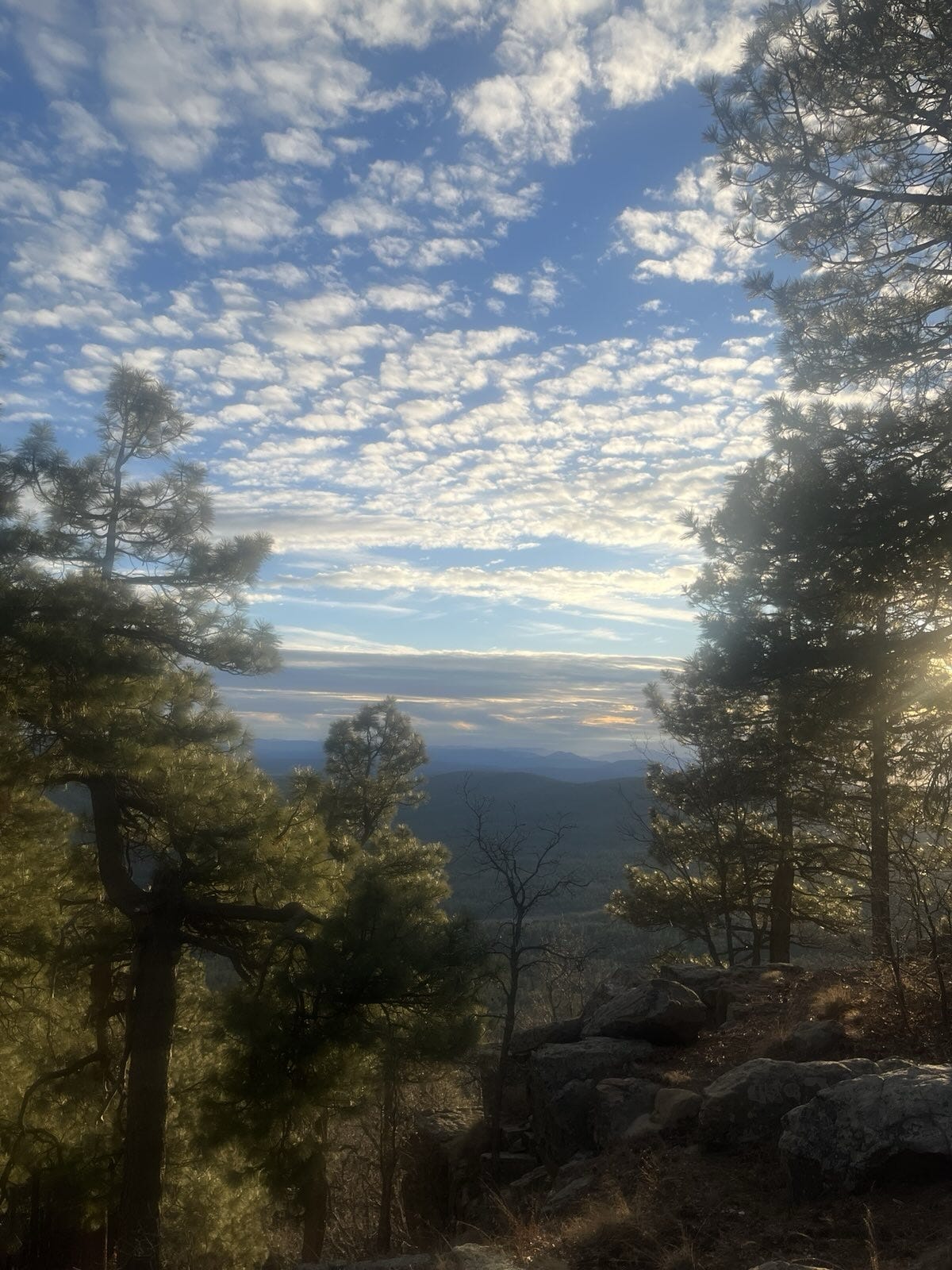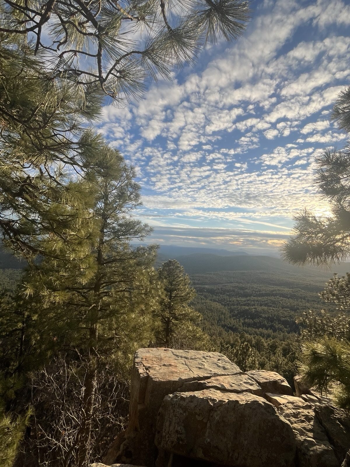 Good morning and happy Friday. My wife and I are lucky enough to be away from our usual abode in Oklahoma and visiting my son in Arizona. So while we will not be experiencing this winter storm directly, we able to watch the sunset from the Mogollon Rim above Payson last night — and see the leading edge of clouds and rain showers with the upper level low pressure center moving east from the Pacific that will be the initial driving force in the expansive winter precipitation the next several days.