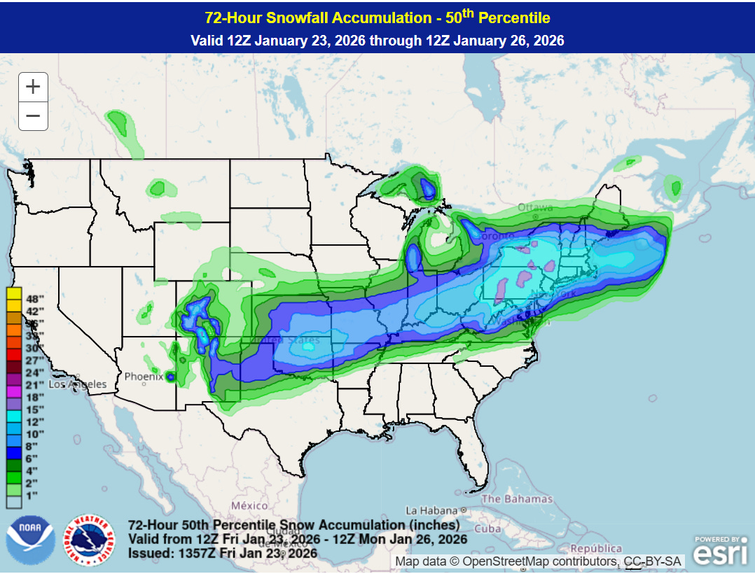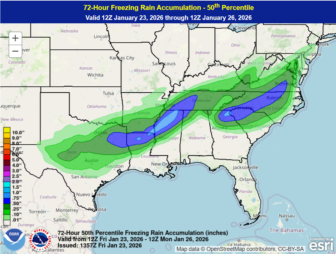 With regard to the potential infrastructure impacts from this event, there has been a lot of concern raised in recent days about how ready FEMA is to respond to a large scale potential disaster given its organizational issues that have been well documented in recent months, including in a recent Government Accountability Office study. In one spot of positive news, CNN reported this morning that FEMA has halted the termination of hundreds of disaster response workers within the agency, at least partially due to this impending storm. Obviously if major impacts do result as anticipated from this winter storm, many will be closely watching FEMA for the timeliness and quality of their response to the disaster.