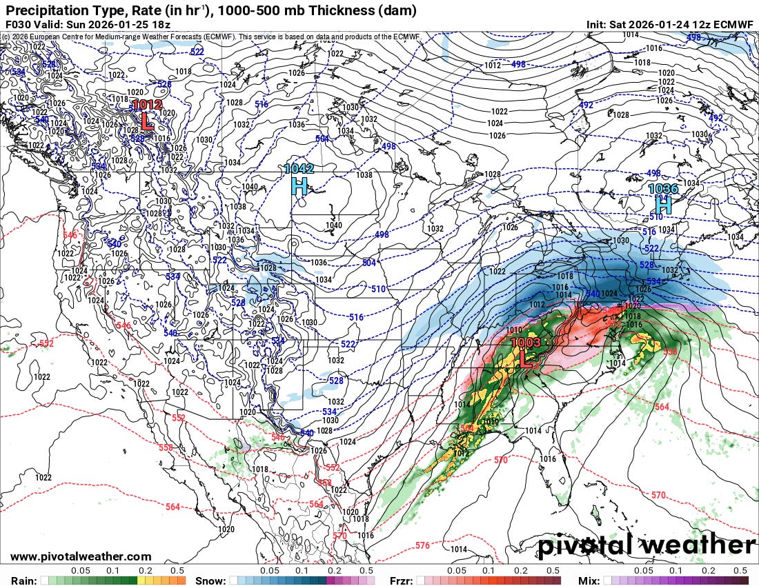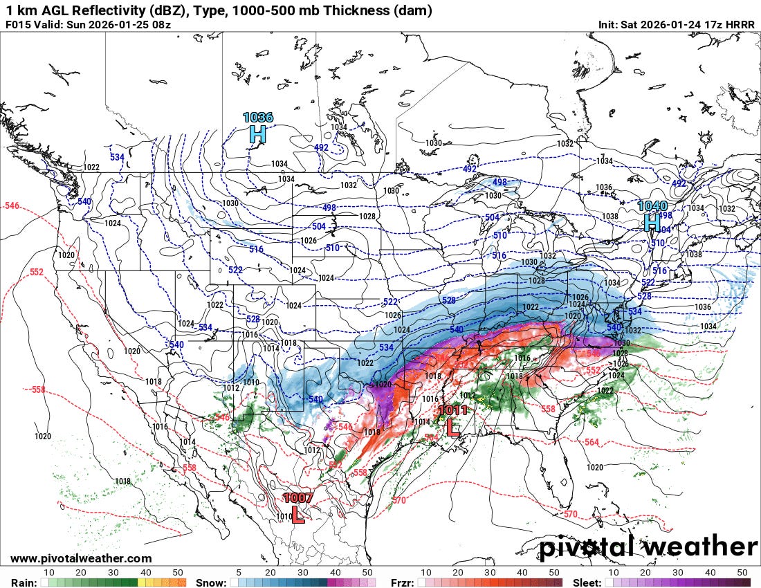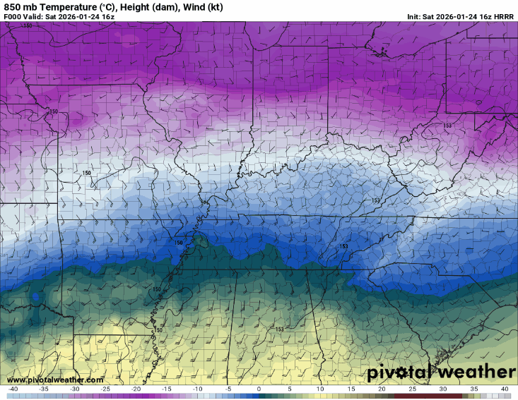 Widespread significant ice accumulation from freezing rain is thus expected from the Arklatex across the Arklamiss Delta and into parts of the Tennessee and Ohio Valleys. Particularly heavy ice accumulations of .5-1.5” look probable from parts of northeast Texas and northern Louisiana across northern Mississippi into parts of Tennessee and Kentucky. As we have been discussing, these sorts of glaze accumulations due to freezing rain would cause catastrophic damage to power infrastructure and trees along with resulting in nearly impossible travel. As I discussed in a note yesterday, the Atlanta metro area continues to be an area that is right on the edge. While currently in an ice storm warning, model trends continue to suggest a significant gradient in ice accumulation across the metro area, with the more impactful ice accumulations from the Athens area northeast where the “wedge” of cold air looks to be more pronounced.