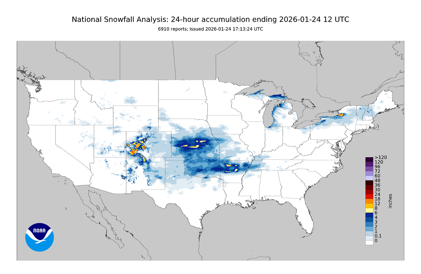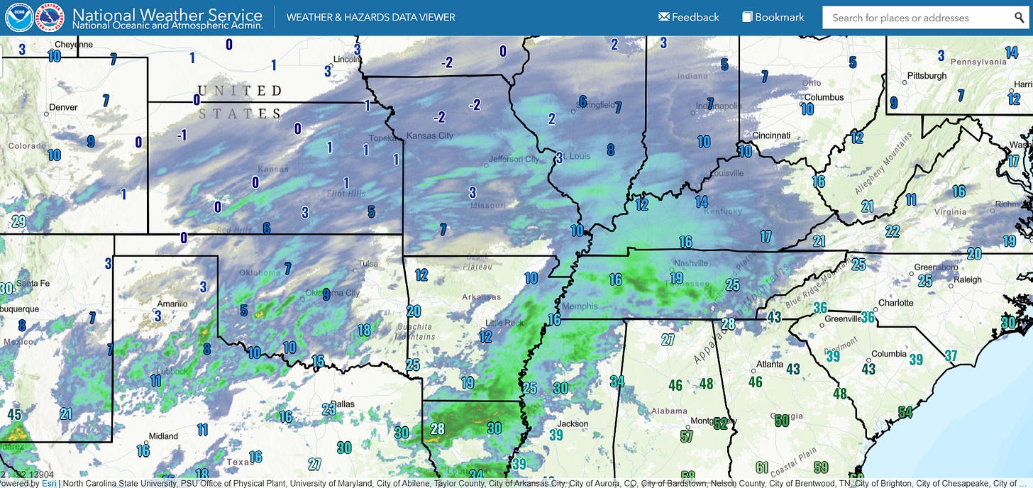 Moderate to heavy snowfall had already accumulated as of 6 am CT this morning across much of Oklahoma and Kansas across northern and central Arkansas into western Tennessee. 6-10” had fallen in higher elevations of northern Arkansas, with 6” also reported in northern parts of the Little Rock metro area.
