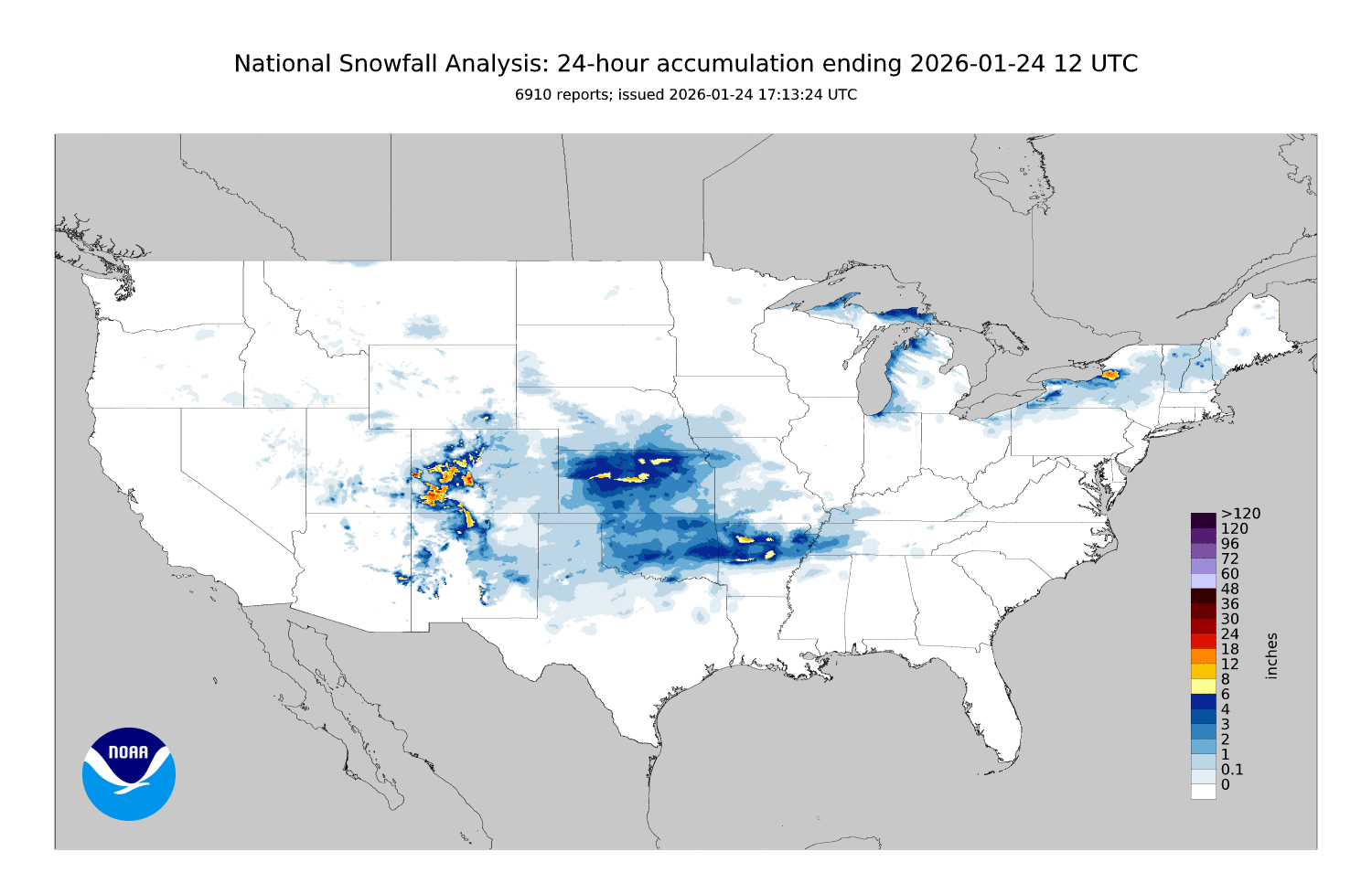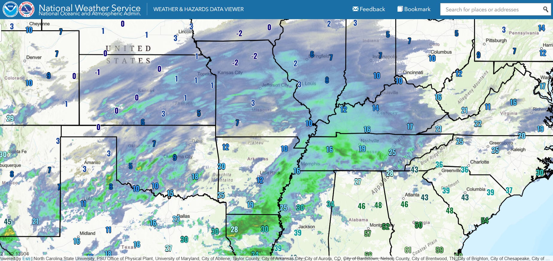 Moderate to heavy snowfall had already accumulated as of 6 am CT this morning across much of Oklahoma and Kansas across northern and central Arkansas into western Tennessee. 6-10” had fallen in higher elevations of northern Arkansas, with 6” also reported in northern parts of the Little Rock metro area.
