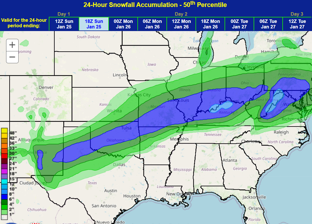 Model trends suggest a shift north in greater ice accumulations for Mid-Atlantic and Ohio Valley, while serious ice storm also still looks on tap for the Mid-South.