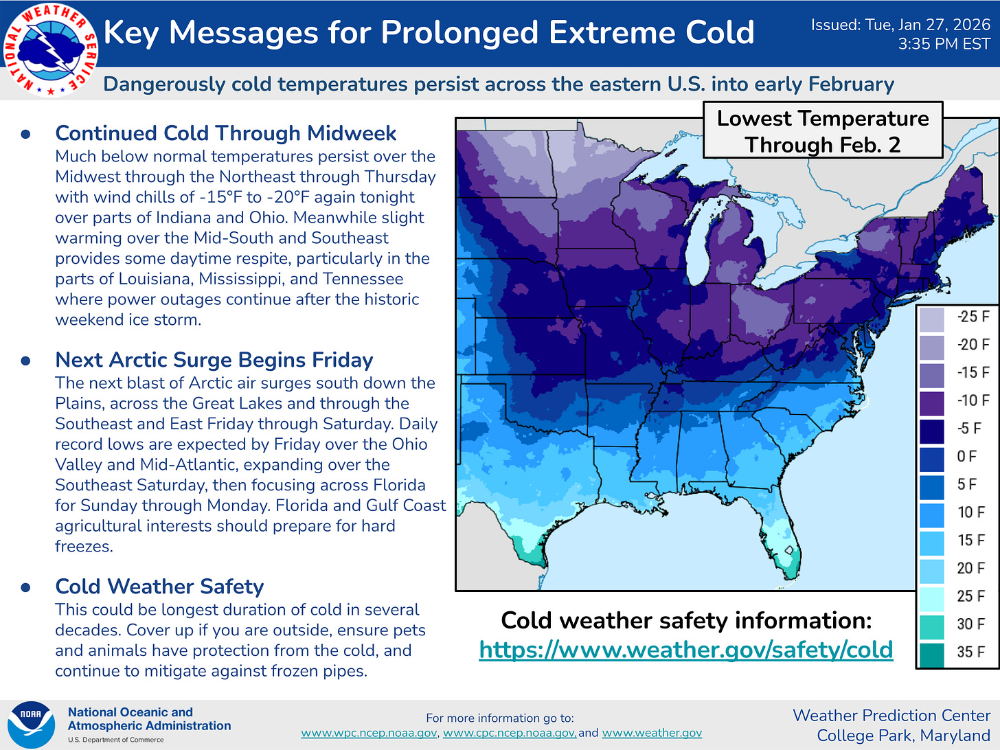 Overall, unusually cold weather is anticipated to last into early February, and given the trend toward milder winters in recent decades, this will likely be one of the most prolonged cold periods the East has seen in many years.