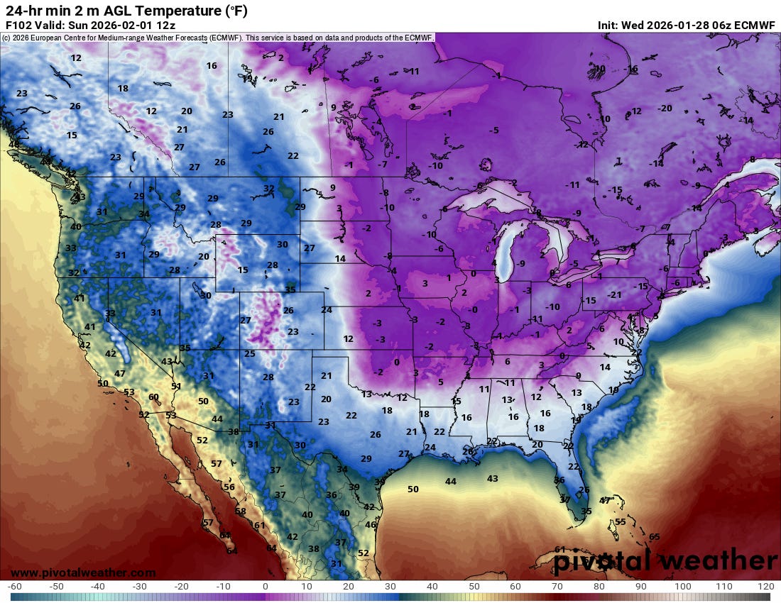 Unfortunately, as we have been discussing the next blast of Arctic air will be pushing into the eastern two-thirds of the country this weekend, with subzero low temperatures expected Sunday morning across much of the Midwest and Ohio Valley, single digits and teens well down into the South, and the potential for a significant, damaging hard freeze well south into Florida with lows in the lower to middle 20s forecast as far south as the Interstate 4 corridor.