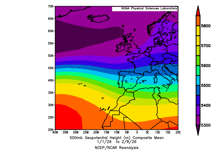 Indeed, if we look at the anomaly in the strength of the zonal (west to east) wind across the region since the start of January, we see much stronger than normal westerly winds from the Azores into the Iberian Peninsula. The primary result of this persistent weather pattern has been a parade of strong storm systems into western Europe.
