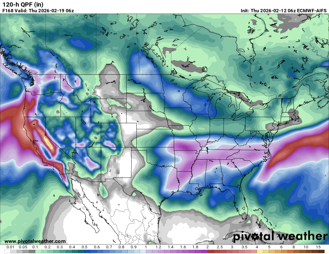 That system is still expected to move east and bring much needed rainfall to the southeast quarter of the country the next few days. Some thunderstorms are also anticipated and as I mentioned yesterday, there is at least a marginal risk of severe storms for the Southern Plains and western Gulf Coast regions Friday into Saturday. The threat of a more “phased,” intense Nor’easter as I mentioned on Tuesday associated with this system now appears to have passed, with the surface low pressure center most likely to move east off the coast early next week and intensify well offshore. Meanwhile, a busy period of weather is expected early next week in the West, with widespread heavy rainfall and very heavy mountain snows anticipated, particularly in California.