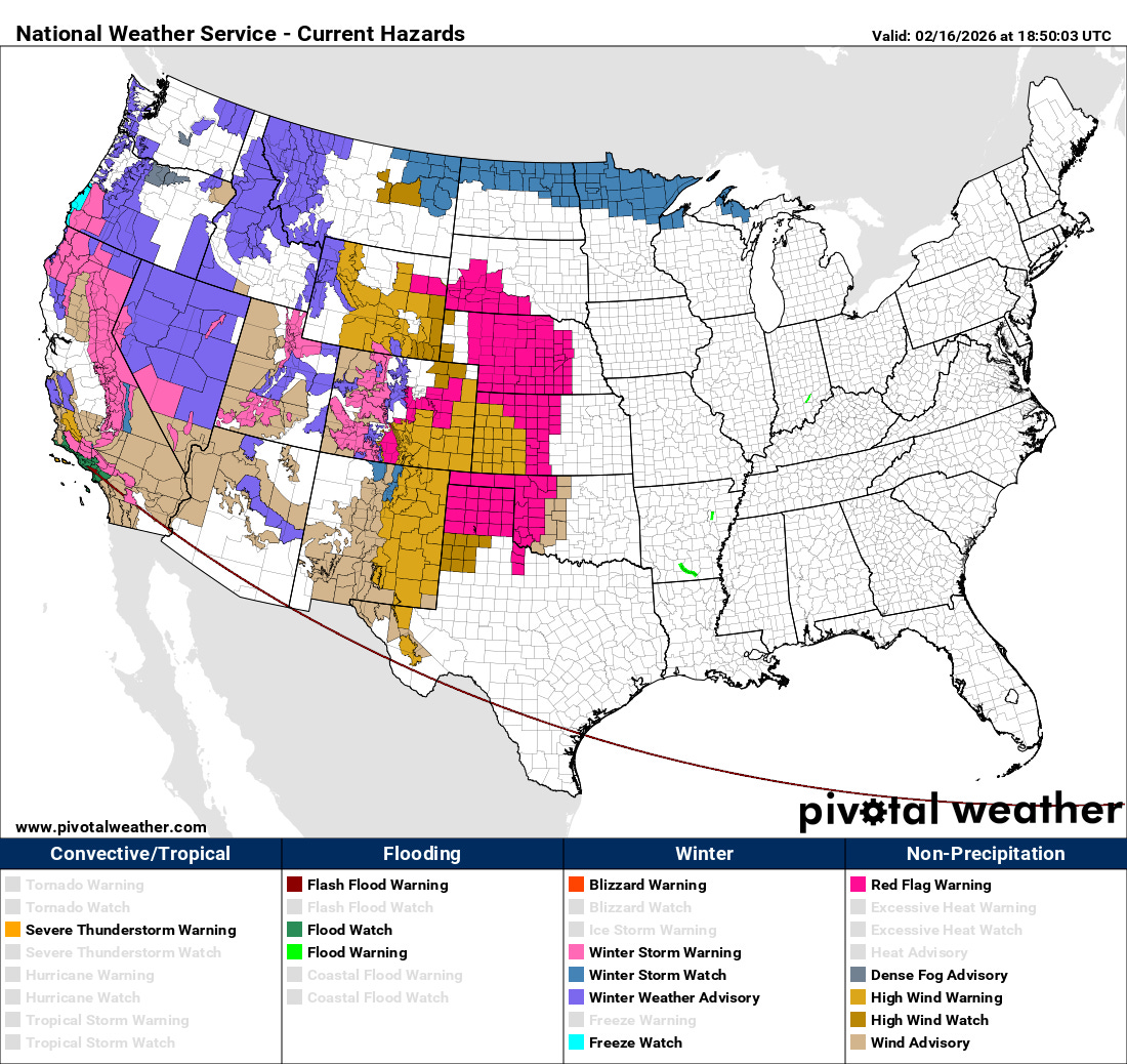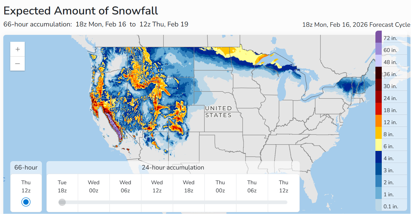 While the impacts from this storm system will be over a broad region, the primary focus for heavy precipitation will definitely be over California, where multiple feet of snow are expected in the higher elevations of the Sierra Nevada, making for difficult to impossible travel.