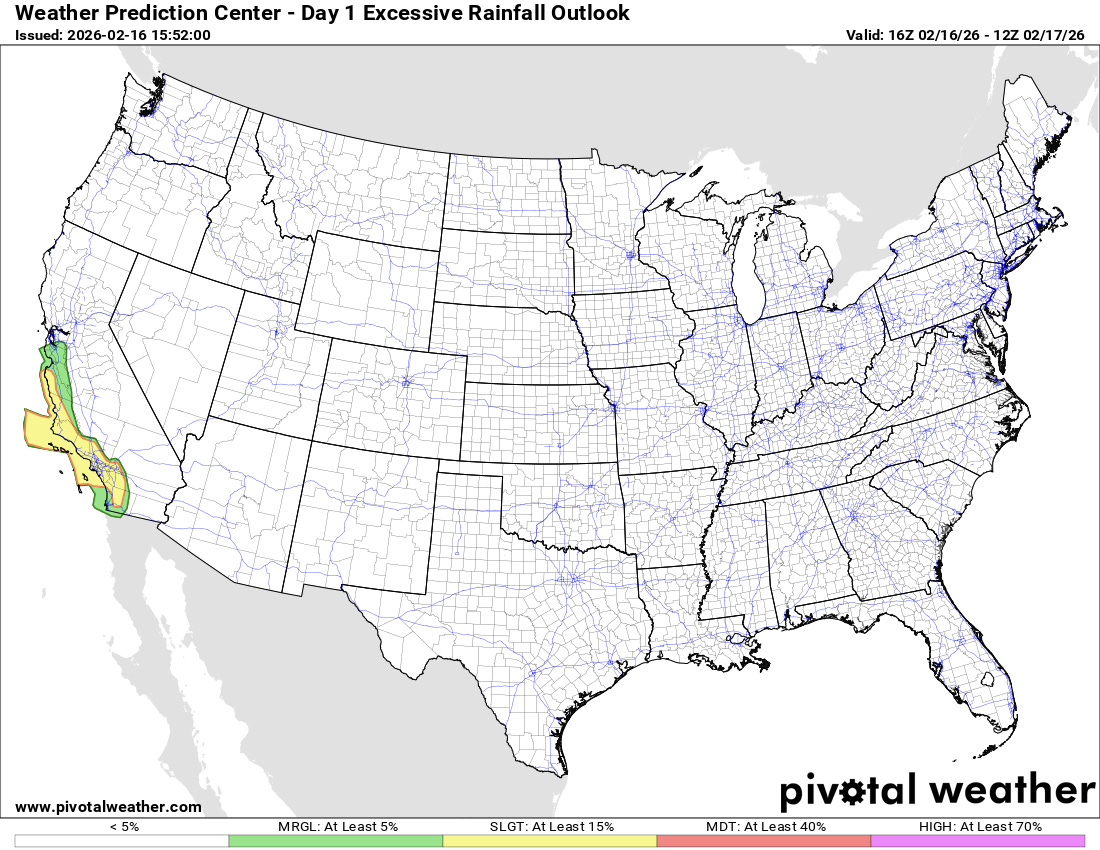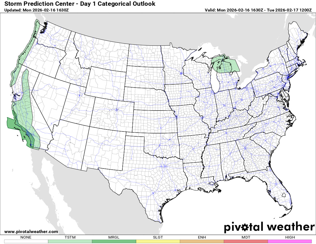 Some thunderstorms will also be possible along the West Coast the next few days, and along with the risk for flash flooding, they could also produce a few reports of severe weather across central and southern coastal California through Tuesday morning.