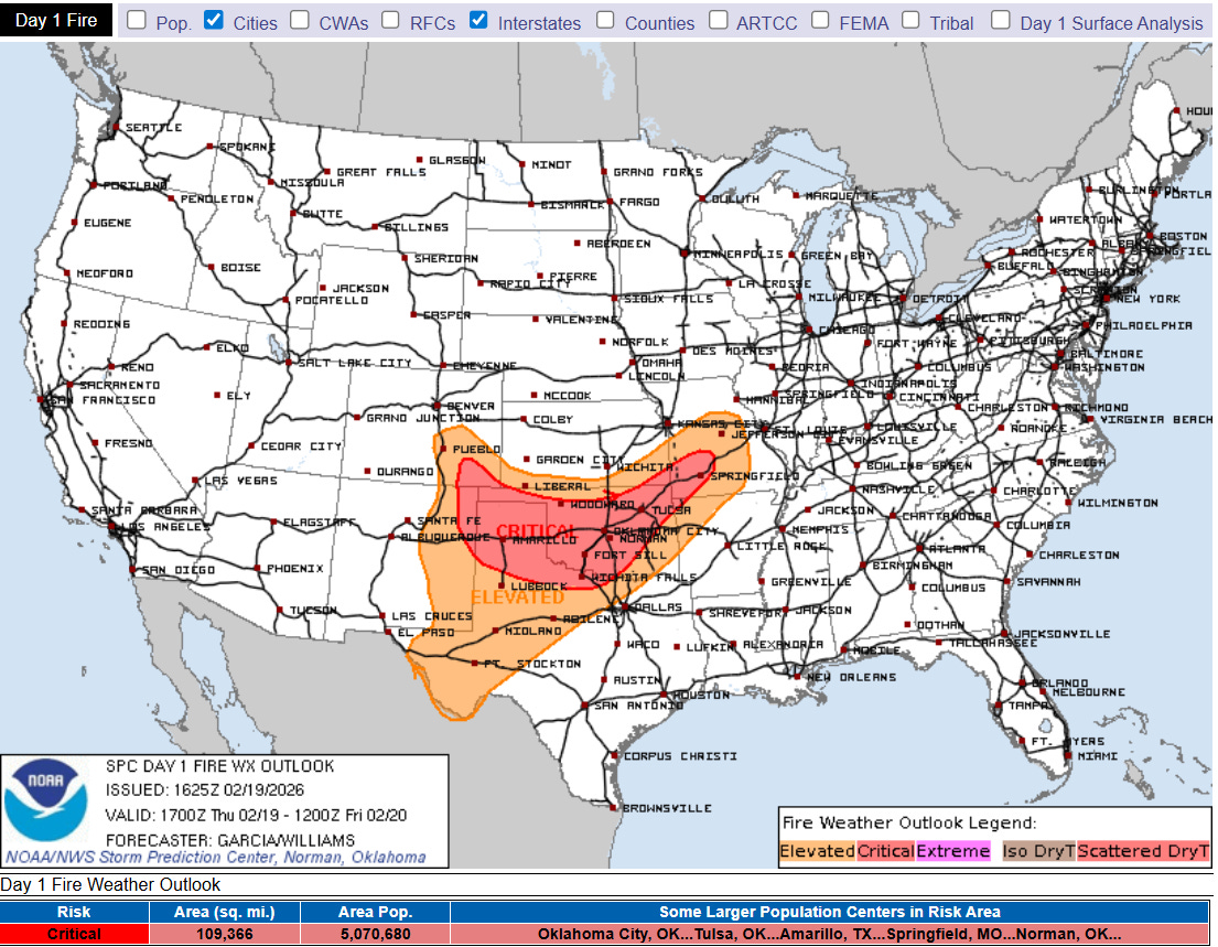 Unfortunately, critical wildfire danger is expected to continue the rest of today (top graphic) and on Friday as upper level weather disturbances continue to swing east out of the Western US trough and bring gusty winds and dry surface air to the region.