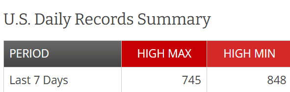 The record temperature web tool from NOAA’s National Center for Environmental Information shows that more than 1500 record warm temperatures were set in the last week. Some daily record warm minimum temperatures were broken by several degrees.