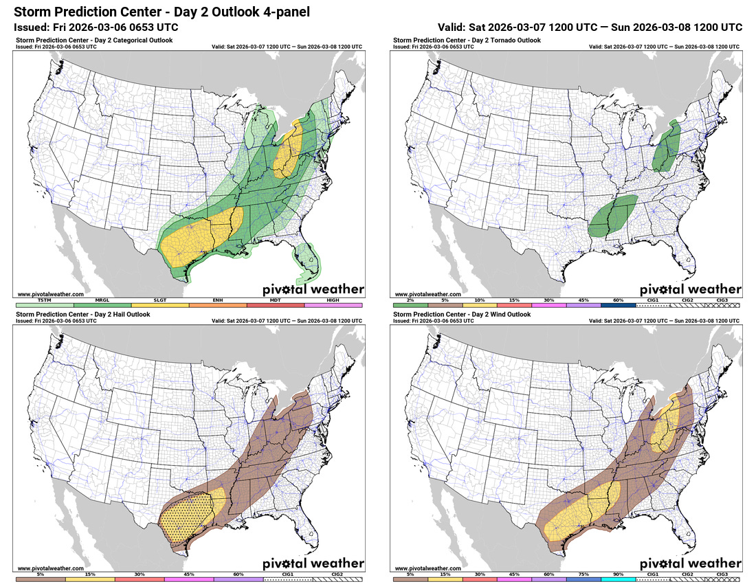 Some of the AI guidance suggests a somewhat enhanced risk of wind damage across the central Appalachians on Saturday as a line of strong to severe storms moves east across the region, so that will be something I will be watching in later forecasts.