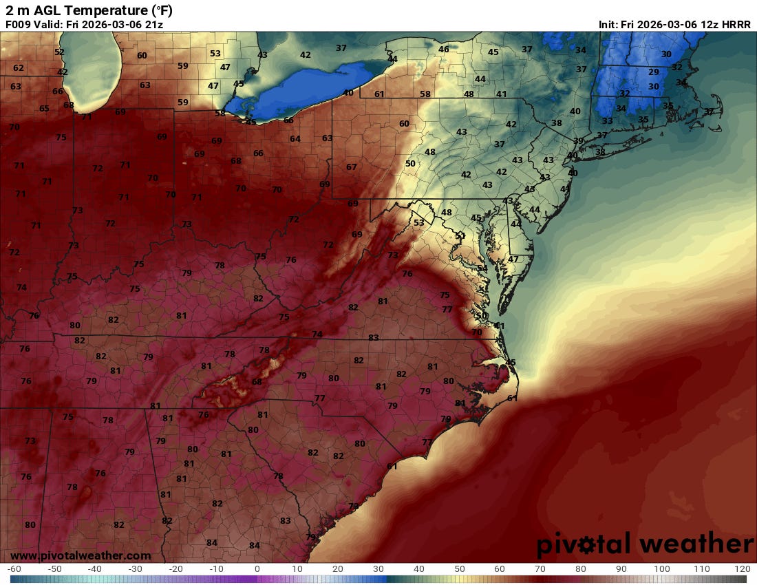 Much of the AI guidance today suggests a more focused risk for damaging winds and a few tornadoes this afternoon and evening across parts of the central Appalachians (Nadocast shown above). SPC’s tornado forecast has a CIG1 conditional intensity area in this region, showing that even though the probability of a tornado within 25 miles of a point is only 2-5%, if a tornado were to occur it has the potential to be strong.
