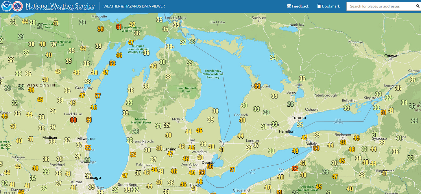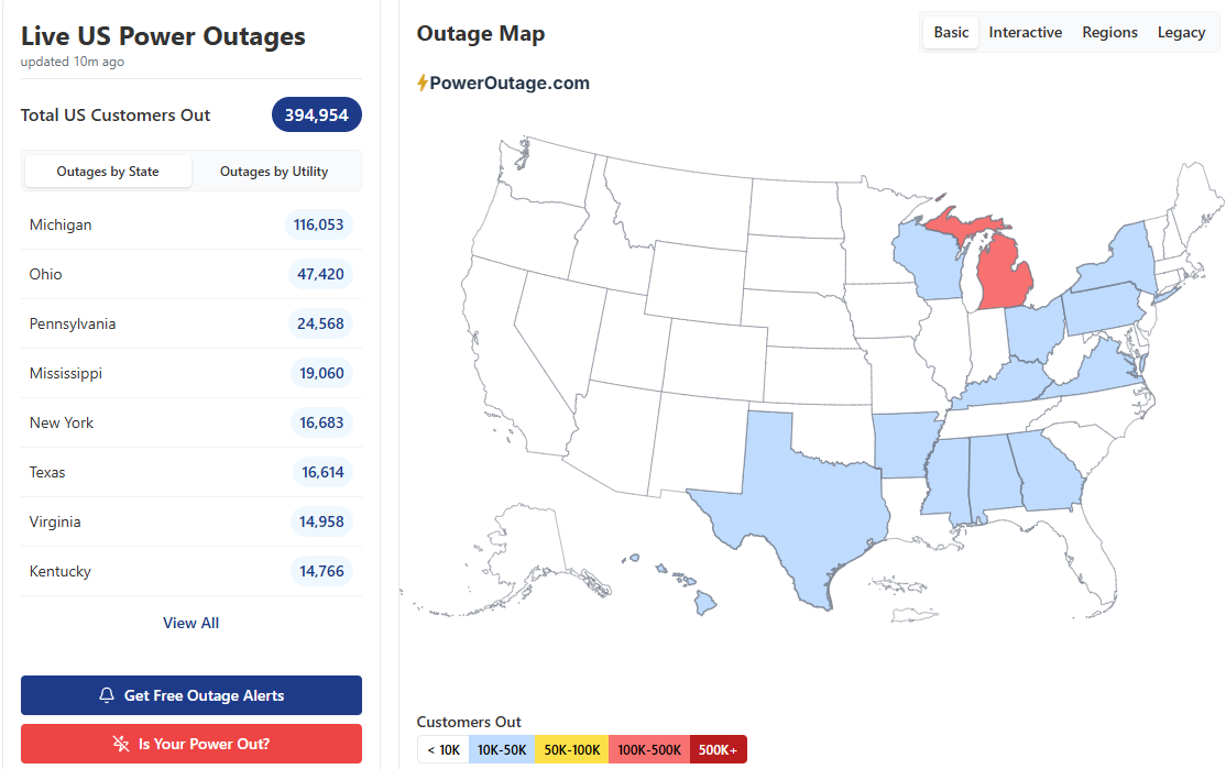 About 200,000 customers are without power in the Great Lakes region per PowerOutage.us, with more than 100K in Michigan.