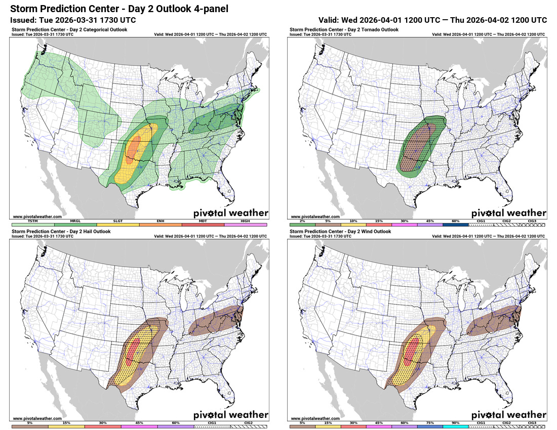 Had a busy day today, so doing a quick late day update on severe weather risks across the country this week.