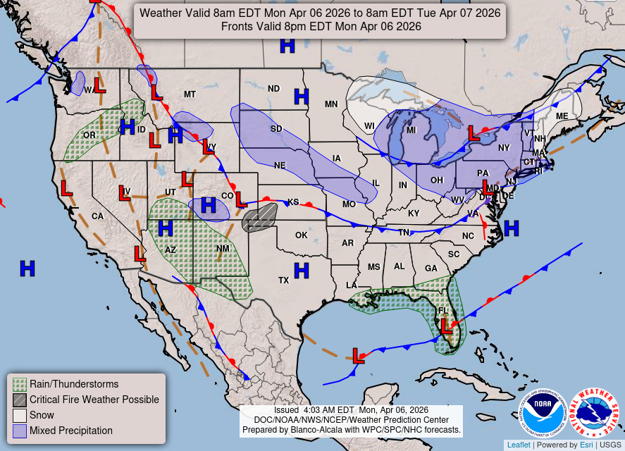 Taking a quick look at US weather as we start a new work week — as I discussed in my last post Saturday, things have overall trended quieter across the country. The main focus for shower and thunderstorm activity the next few days will be in Florida as an active subtropical jet stream (possibly another sign of a potential atmospheric transition toward El Nino) will combine with a stationary front to produce some beneficial heavy rainfall. By later in the week and into early next week, conditions will likely become more active in the middle of the country again as a new upper level trough of low pressure moves into the West.