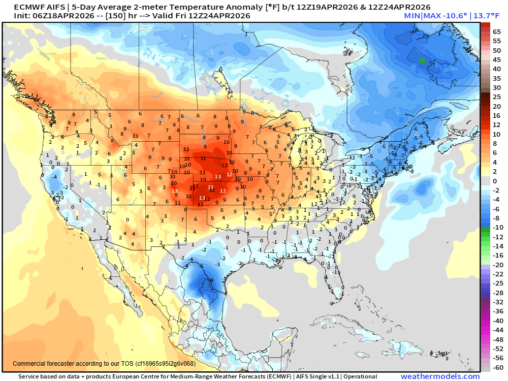 The air moving into the Northeast behind this front will be quite cold for late April, with some record low temperatures possible Tuesday. Meanwhile, much of the remainder of the country will once again see above normal temperatures on average for this upcoming work week.