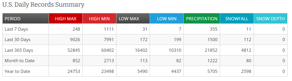 With all of the severe weather this week, I have not talked as much about the record warmth, but there has been plenty of it again over the last several days, particularly across the eastern half of the country. Record highs have been common in the Southeast and Mid-Atlantic, and per the table above record warm minimums have been particularly widespread. Washington DC, Philadelphia, and Baltimore all had their first 90F day this week, weeks before the average first 90F which typically comes later in May (thanks to my colleague Victor Murphy for this info). Capital Weather Gang noted yesterday that Washington has already had a dozen days with a high of 80F or higher this year, the most on record so early.