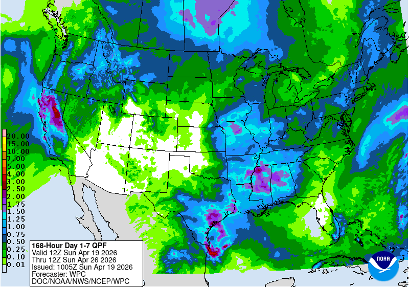 Not a lot of relief is expected in the areas with most severe drought concerns over the upcoming week, with the exception of the area from south Texas into the Mid-South where showers and storms will provide some moderate amounts of rainfall.