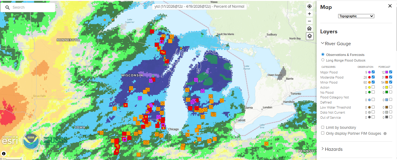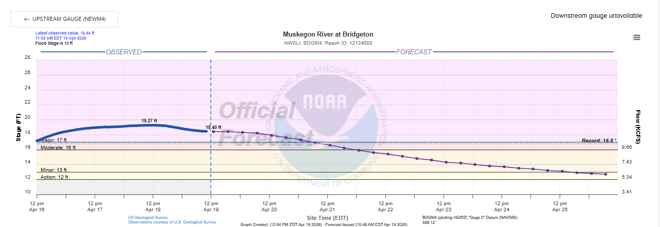 In fact, some rivers are at record levels. The Muskegon River is at record levels. The gage at Bridgeton shattered its previous record, reaching 19.27’ yesterday (records go back to at least the late 1970s).