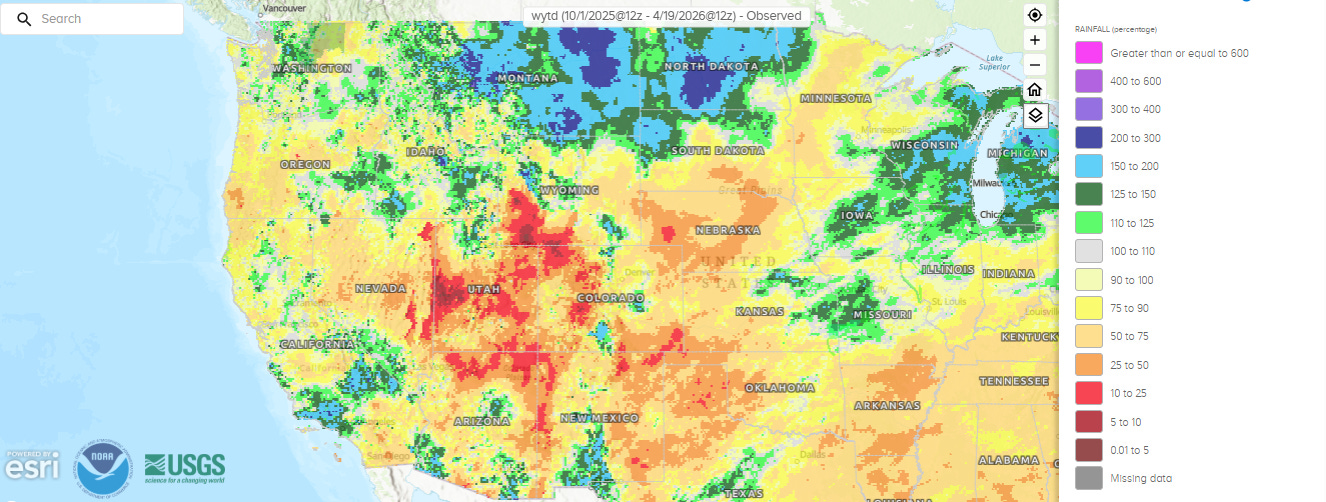 Meanwhile one of the few parts of the country that has seen above normal precipitation so far in 2026 has been the western Great Lakes region, and the issue here is definitely with too much rainfall as many rivers are in major flood.