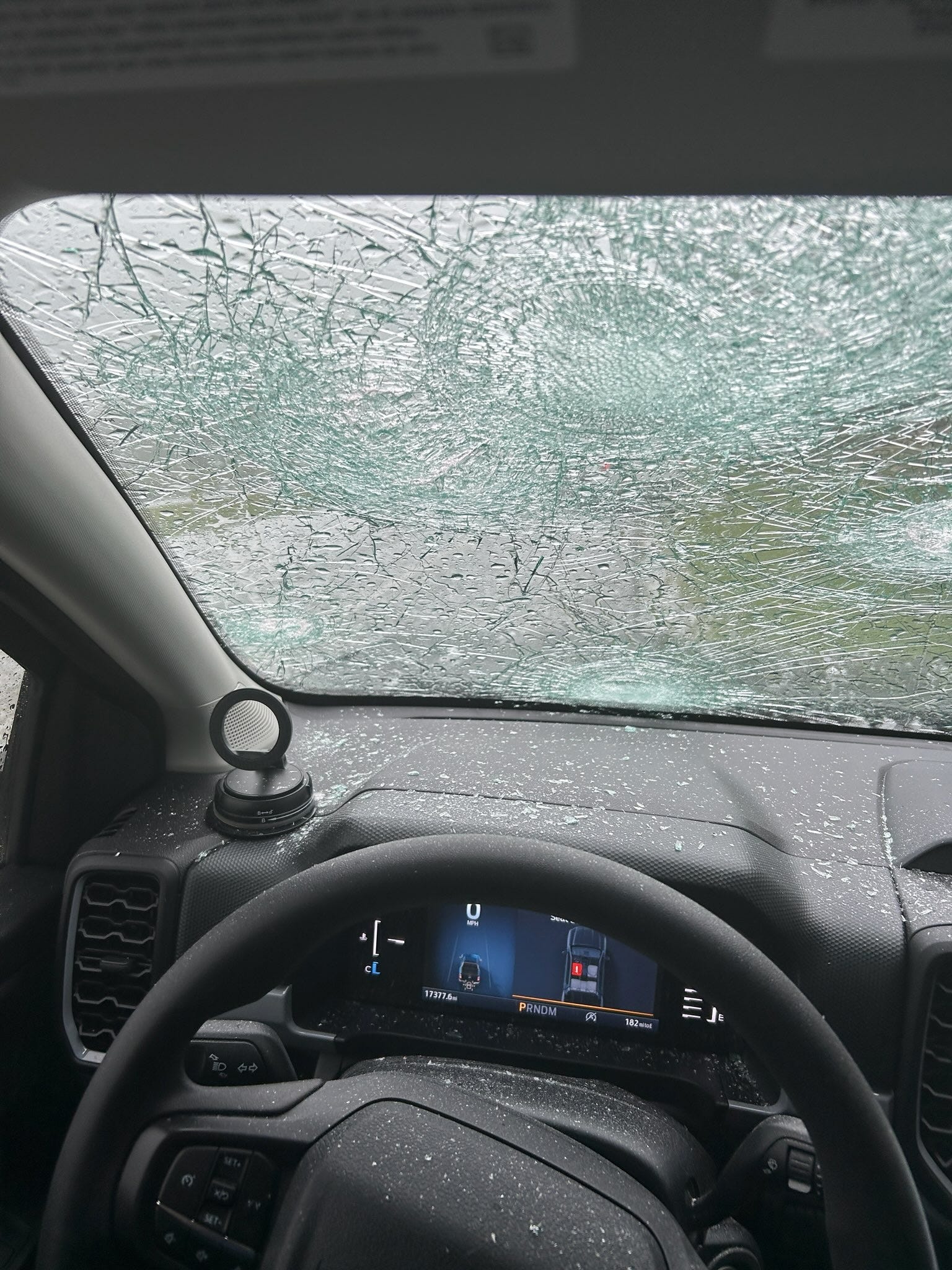 Major impacts occurred across the region, including numerous Missouri Highway Patrol vehicles suffering serious damage (picture above courtesy MHP) and the death of an emu and serious injury to a rhea at the Dickerson Park Zoo.