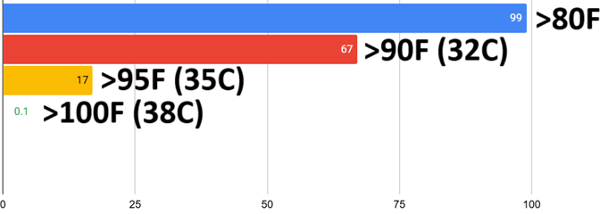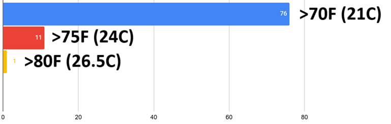 | Normal June 1 | 90F (32C) | N/A | 70F (21C) | N/A |