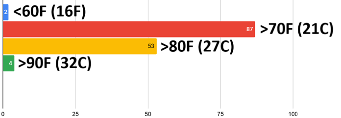 | Normal March 1 | 74F (23.5C) | N/A | 53F (11.5C) | N/A |